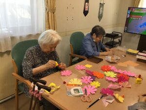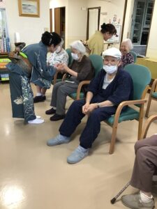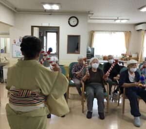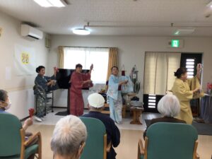 皆さん毎回楽しみにしている訪問レク🪭今回は手作り扇子や鳴子を振って賑やかに鑑賞させてもらいました