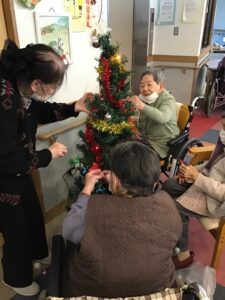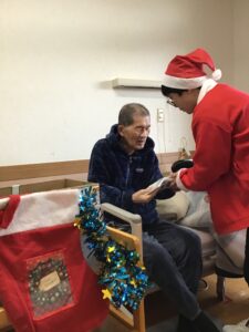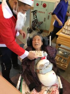 やっぱりサンタさんからのプレゼントって特別なんですね、ご高齢の皆様も何となくワクワク♪