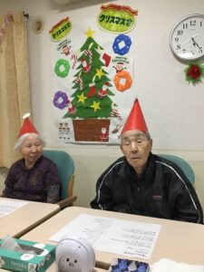 グループホームのクリスマス会は赤いとんがり帽子を『恥ずかしいわ』と言いながらも…🤭