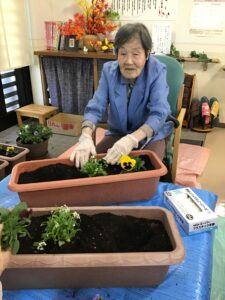とある日はお花の寄せ植えをしたり、壁飾りを作ったり…