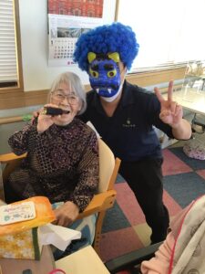 広域特養では毎年行なっている豆まき、今年も職員と利用者様一緒に楽しみました。